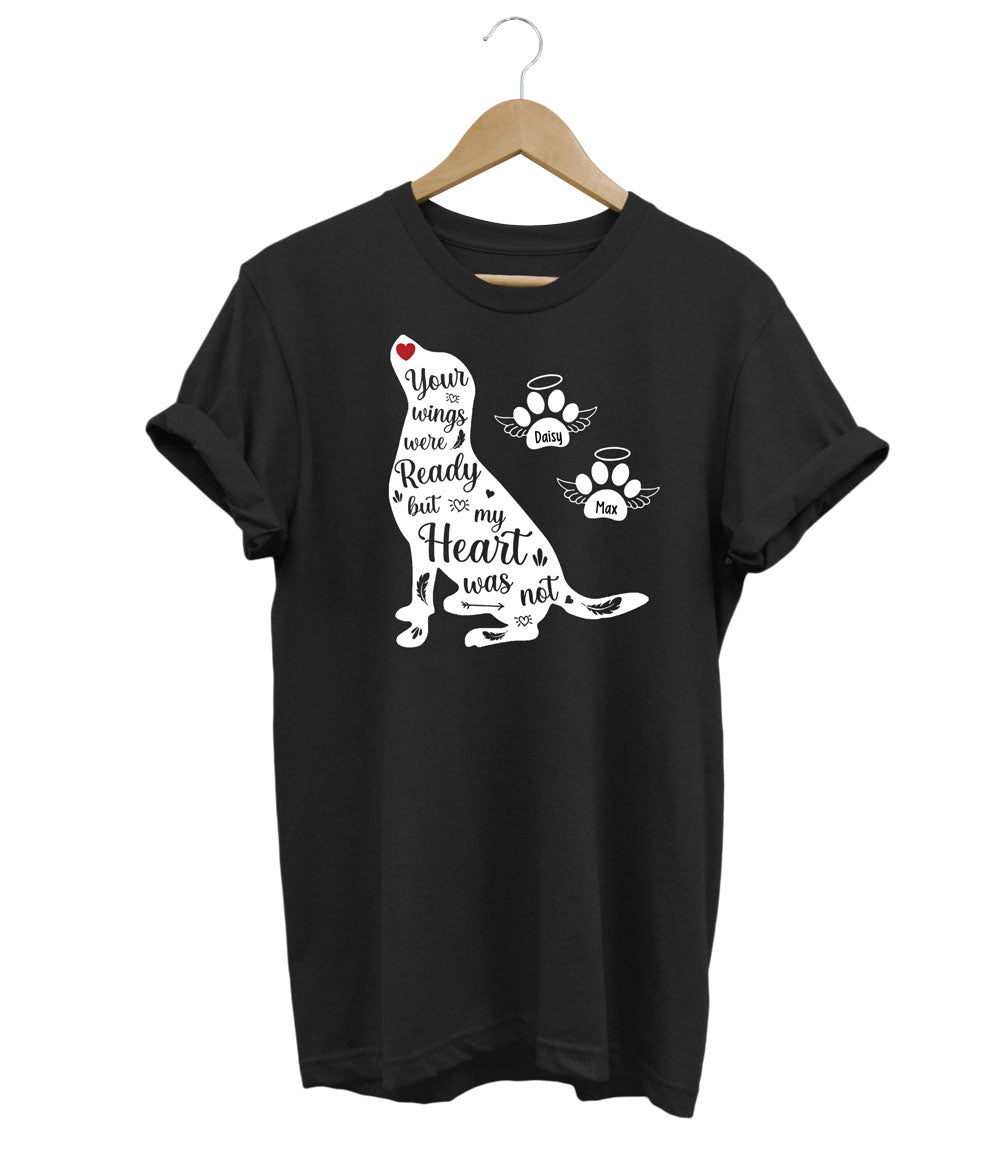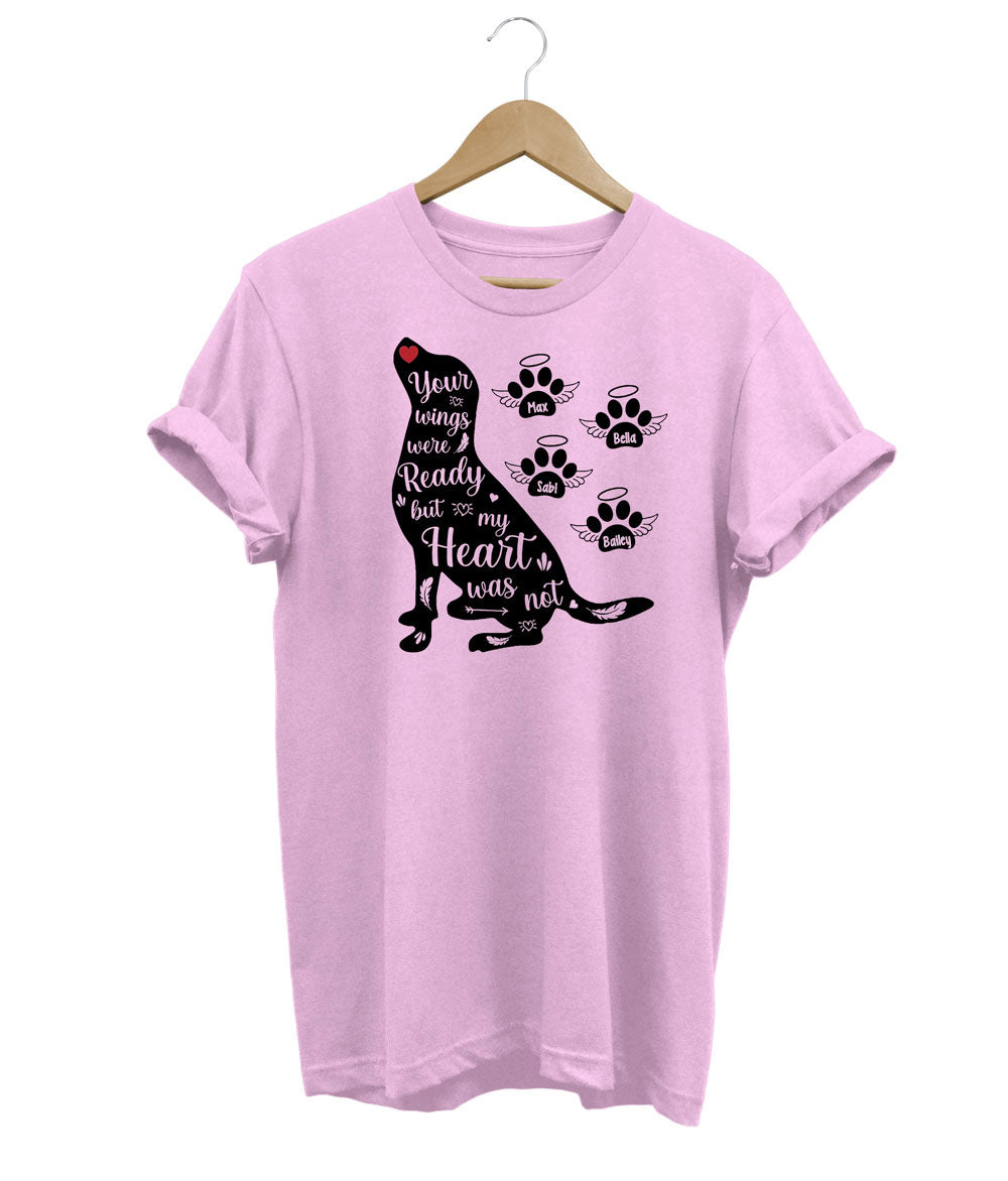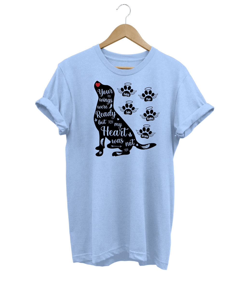 Celebrate your beloved dogs with this custom memorial t-shirt! Personalize it with paw prints for each of your cherished companions and add their names to create a heartfelt tribute. It's a beautiful way to honor and keep their memories close to your heart.